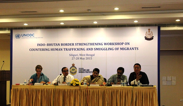 To sensitize concerned agencies and officials from both countries on possible challenges, the United Nations Office on Drugs and Crime in collaboration with the Sashastra Seema Bal, Ministry of Home Affairs, Government of India organized an Indo-Bhutan border strengthening workshop on countering human trafficking and smuggling of migrants. The two-day workshop held in May in Siliguri, West Bengal brought together officials from the Government of India including from the Ministry of Home Affairs, Sashastra Seema Bal, police, customs and immigration and from the Royal Government of Bhutan, including from the Ministry of Foreign Affairs, Royal Police from Bhutan, immigration, customs etc. Also, NGOs working on human trafficking in the border area in India were present as well as experts from Australia.