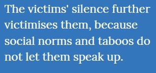 The victims' silence further victimises them, because social norms and taboos do not let them speak up.