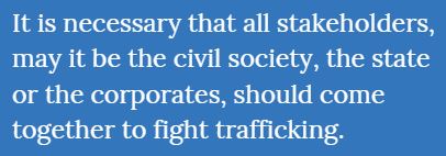 A large number of trafficking is carried out for the purpose of supply chain. Children, women and men are being trafficked and then engaged in supply chains of companies-be it big, small, national or international. So, corporate engagement and partnership in solving the problem is absolutely critical. All the government agencies must converge in this fight-it is not just the responsibility of one ministry or one department; it is a cross-departmental and inter-ministerial issue where all of us have to work together.