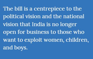 Q: The Lok Sabha passed the Trafficking in Persons Bill last week. What are your thoughts on it and how big a development is this in the fight against trafficking?