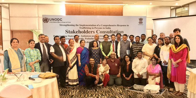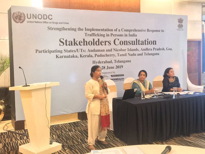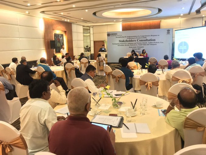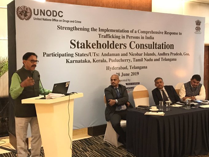 Hyderabad (India)/28 June 2019: With the objective to strengthen and implement national strategies, plans and policies against trafficking in persons, UNODC in collaboration with the Ministry of Home Affairs, Government of India hosted a Consultation at Hyderabad, Telangana on 28 June 2019. The consultation was the last in a series of five stakeholder meetings financed by the United Kingdom to strengthen anti-trafficking coordination across India. The deliberations brought together stakeholders from Andaman and Nicobar Islands, Andhra Pradesh, Goa, Karnataka, Kerala, Puducherry, Tamil Nadu and Telangana.