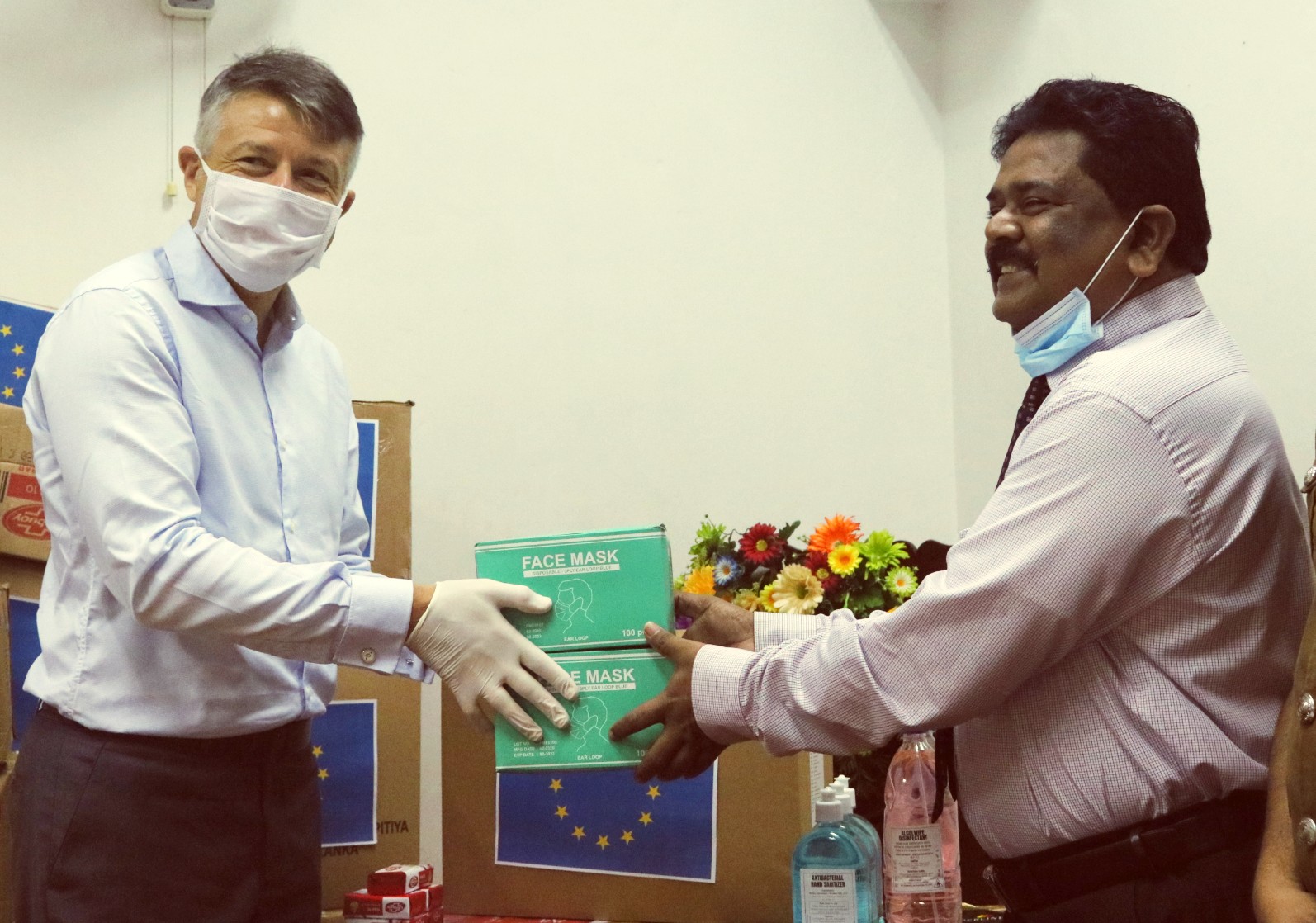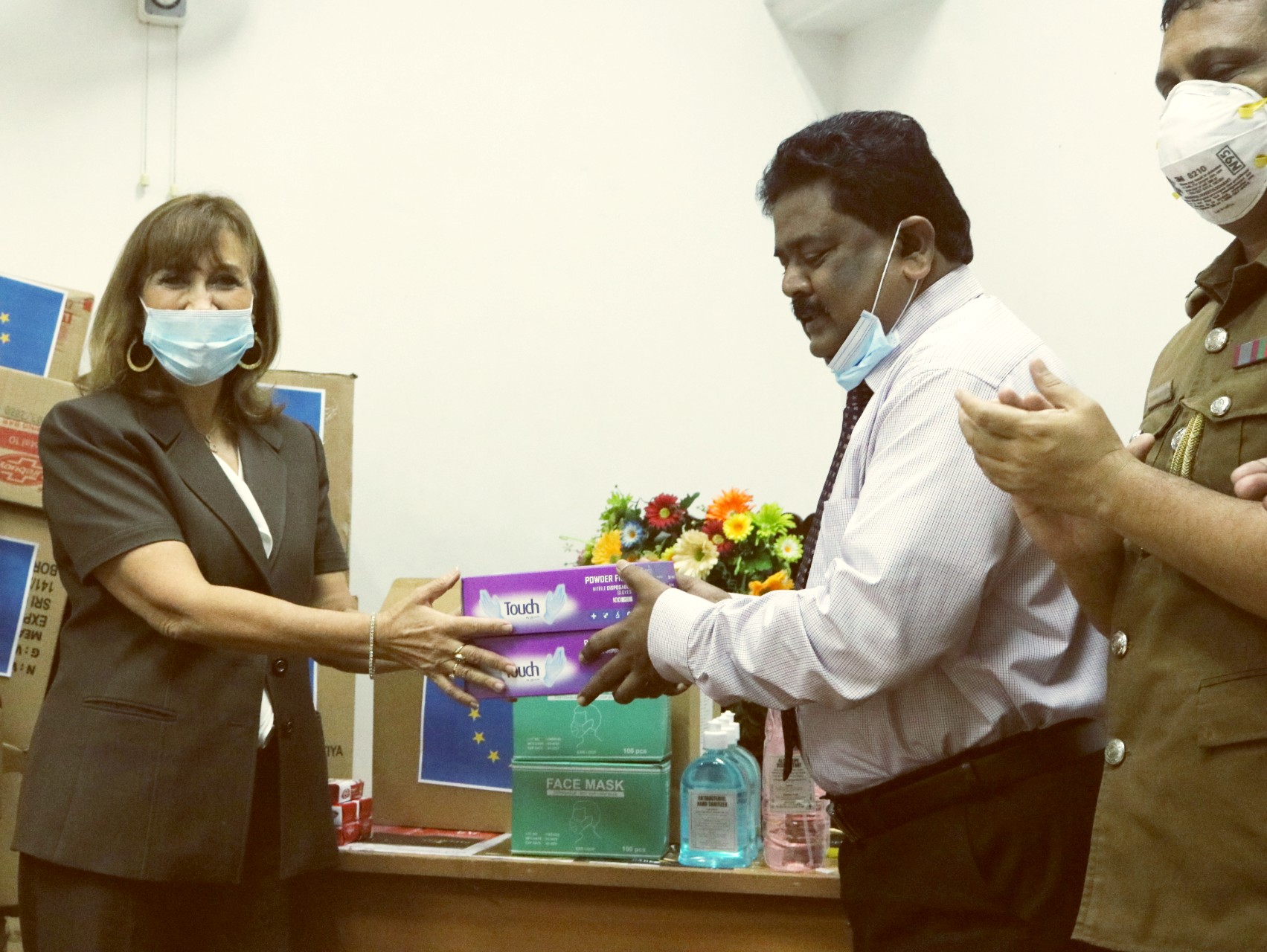 A handover meeting was carried out on May 21 at the Sri Lankan Department of Prisons headquarters in Colombo, with the participation of the Commissioner General of Prisons, Mr. T.M.J.W. Tennakoon, the UN Resident Coordinator for Sri Lanka, Ms. Hanaa Singer, and the Ambassador of the Delegation of the European Union to Sri Lanka, His Excellency Mr. Denis Chaibi. During the event, Ms. Hanaa Singer said: “I thank the European Union for their support to the Sri Lanka Department of Prisons through UNODC, for allowing UNODC-GMCP to take immediate measures to respond to critical needs in prisons under the context of COVID-19. We commend the efforts exerted to effectively keeping the spread of COVID-19 under control and for maintaining the prison population safe from it. However, the UN shares the government’s concern on overcrowded prisons in the country and will continue supporting their effort to ease the situation with sound rule of law.” The items provided include 20,000 surgical face masks, 200 bottles of had sanitizer, 1,500 pairs of hand gloves, 5,000 hand soap and 30 infrared thermometers.