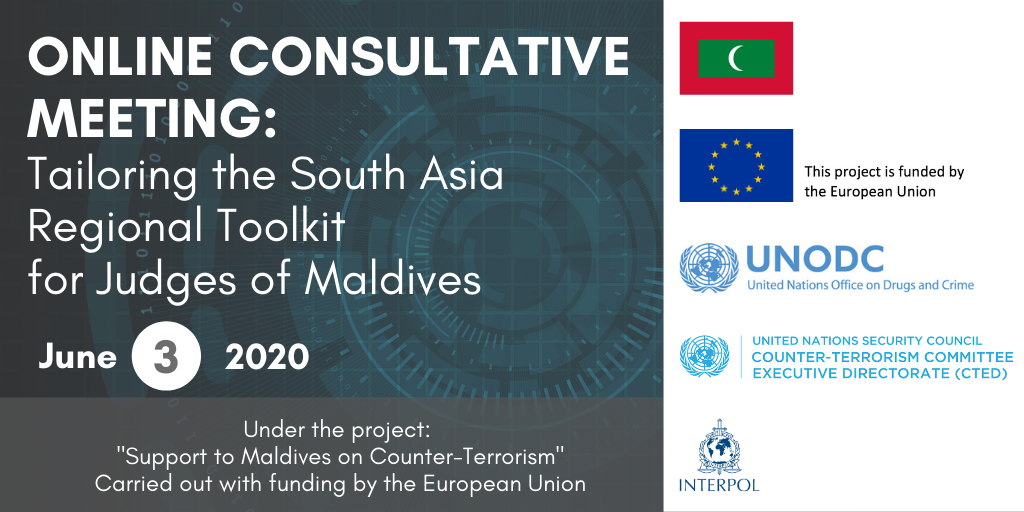 On 3 June 2020, UNODC in close cooperation with CTED organized an online consultative meeting for the judiciary of Maldives under the framework of the initiative. Two United States District Court judges participated as subject-matter experts and introduced over 30 judges of Maldives to the “South Asia Regional Toolkit for Judges: Supporting the Development of National Bench Books for the Effective Adjudication of Terrorism Cases”.