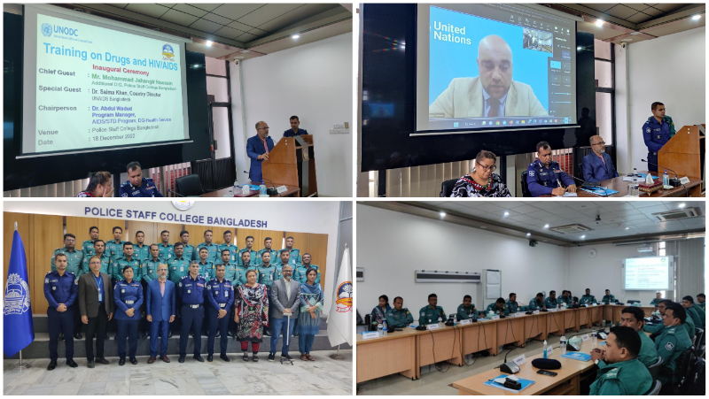 In this backdrop, UNODC conducted the first ever five-day training on “Drugs, Crime and HIV/AIDS”, in collaboration with the Bangladesh Police Staff College. Attended by 25 inspectors from the Dhaka Metropolitan Police (DMP), the training was based on a manual, ‘Police Training Module on Drugs, Crime and HIV/AIDS,’ jointly developed by UNODC and Bangladesh Police. The training was opened by Mr. Marco Teixeira, Representative, UNODC Regional Office for South Asia.