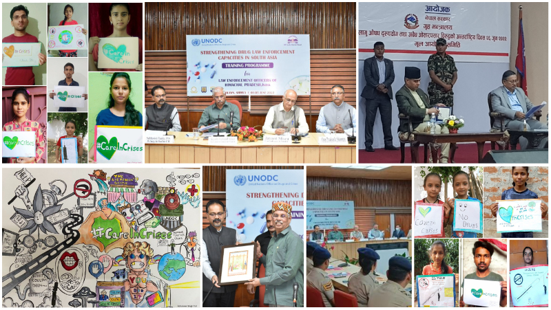 To raise public awareness against drug use, UNODC-South Asia engaged with young people from six states in India, who pledged their support to UNODC’s efforts and produced artwork for advocacy on the World Drug Day. UNODC also sensitized youth and provided them guidance to create posters, art and doodles to promote the theme of ‘Care in Crisis’.