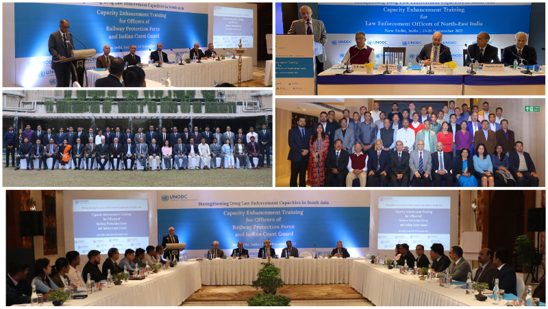 In this context, two capacity-building workshops were organized in New Delhi for senior and operational-level officials of law enforcement agencies from Northeast India, the Railway Protection Force and the Indian Coast Guard. Modules were focused on legal frameworks, investigations and prosecutions, search and seizures, synthetic drugs and forensic testing, among others. The workshops aimed at strengthening inter-agency coordination, knowledge sharing and capacities to counter drug trafficking.