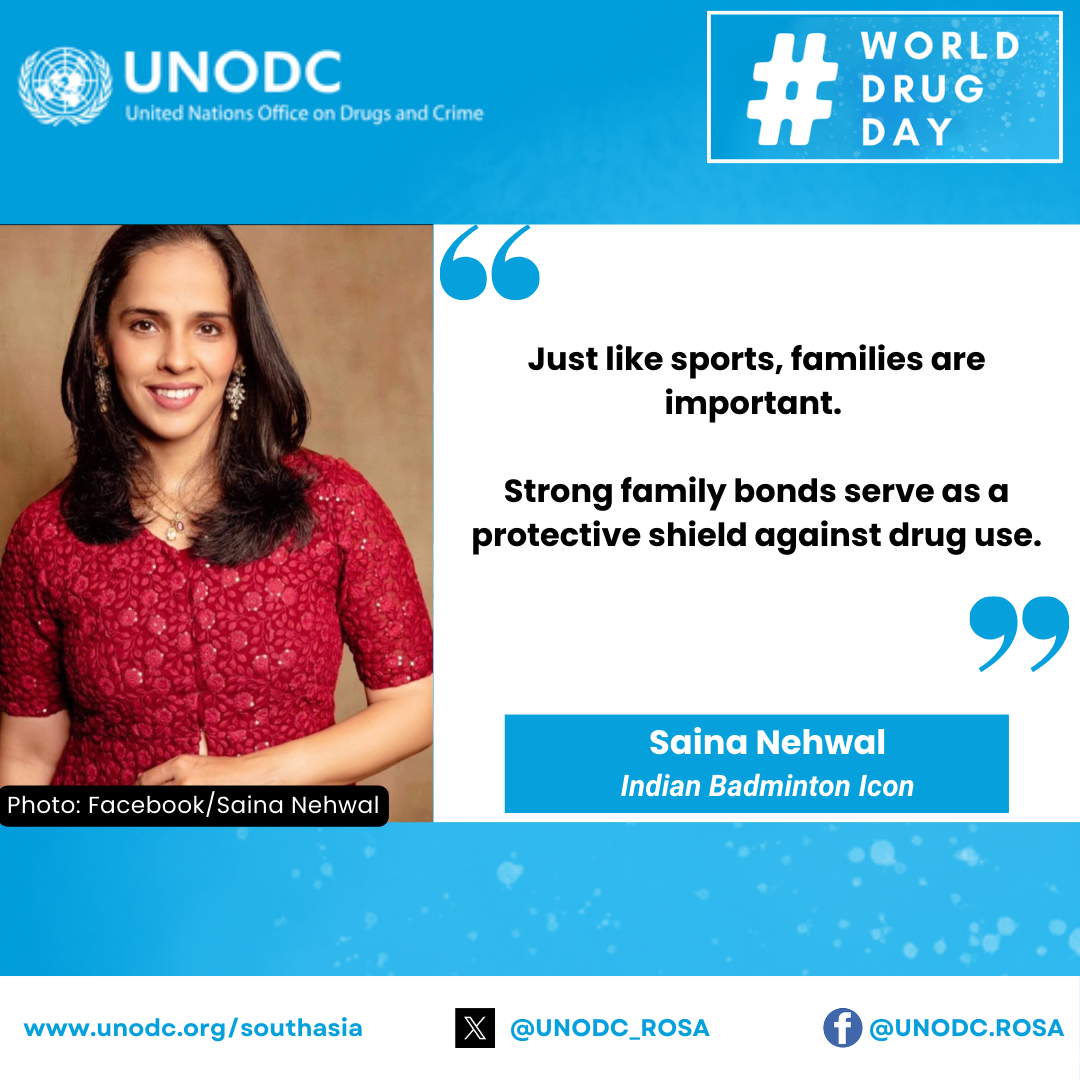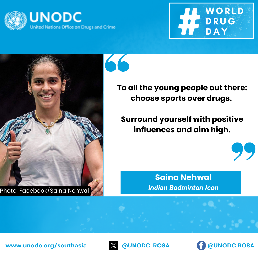 Nehwal highlighted the importance of awareness and community support in preventing drug use, while emphasizing the crucial role of the United Nations Office on Drugs and Crime (UNODC) in promoting a drug-free society.