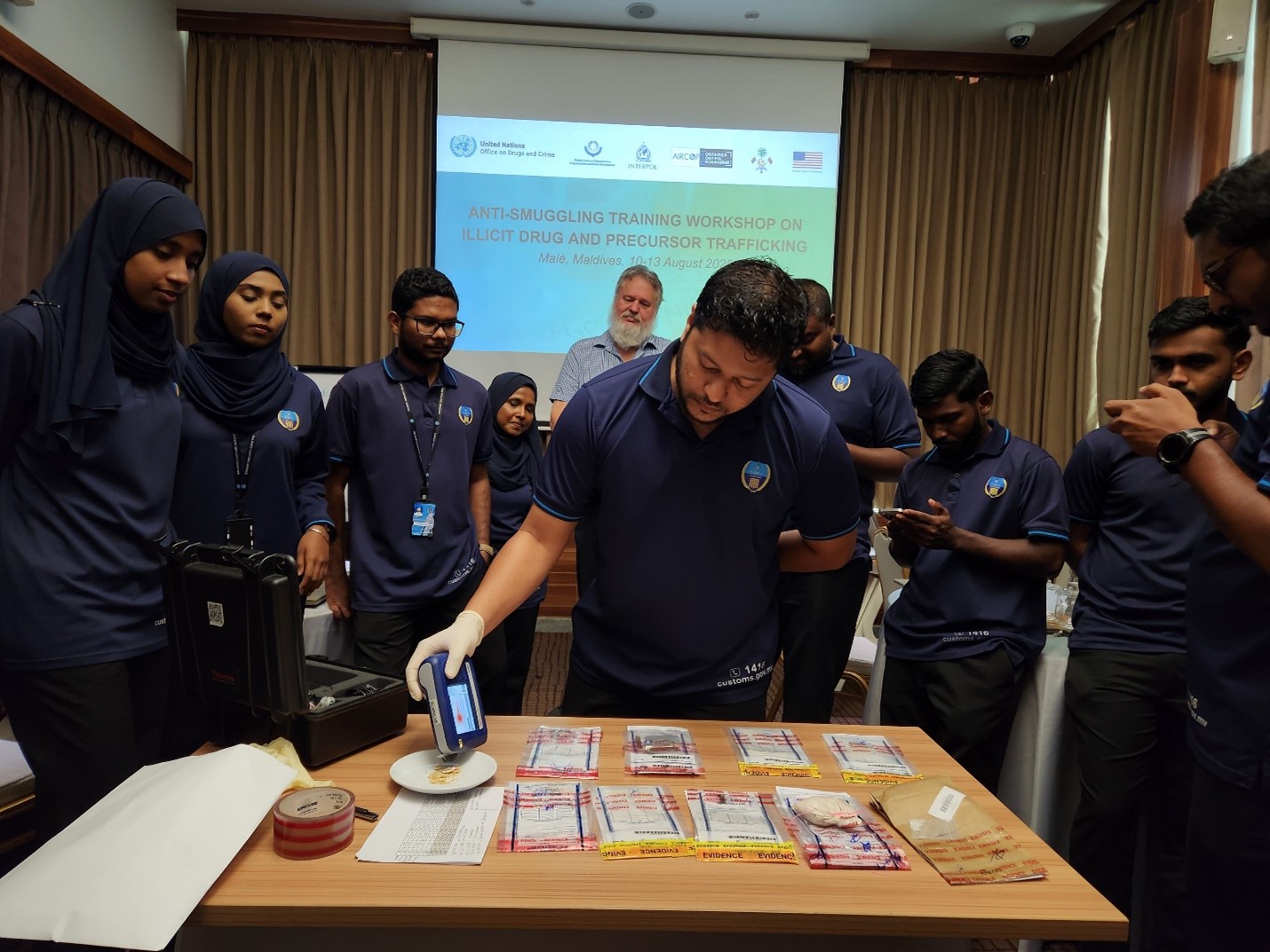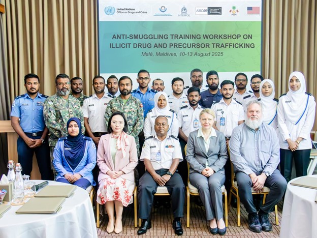 Hulhumale, Maldives/13 August 2025: Traffickers are constantly finding new ways to conceal narcotics and precursor chemicals within legitimate mediums, and the ability of officials to detect these threats swiftly and accurately often determines whether illicit shipments slip through or are stopped in their tracks. Building such expertise is vital for safeguarding borders and communities from the harms of drug trafficking. Capacity building plays a crucial role in enhancing national responses to drugs and crime, especially in regions vulnerable to transnational threats.