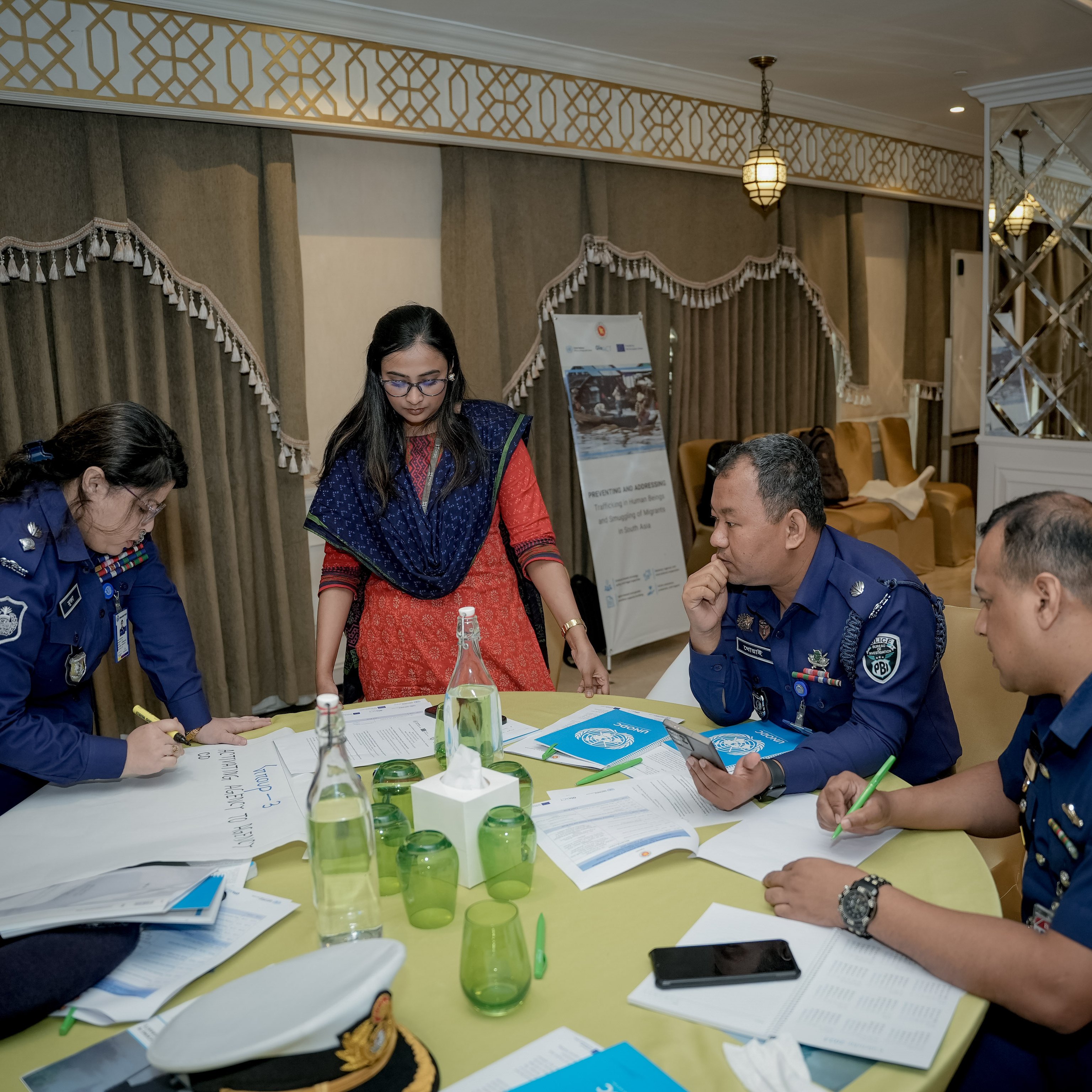 Through a series of in-depth discussions, participants analyzed the major challenges facing Bangladesh in addressing human trafficking and migrant smuggling. They explored strategic priorities and outlined a collaborative roadmap for implementing GLO.ACT South Asia effectively.