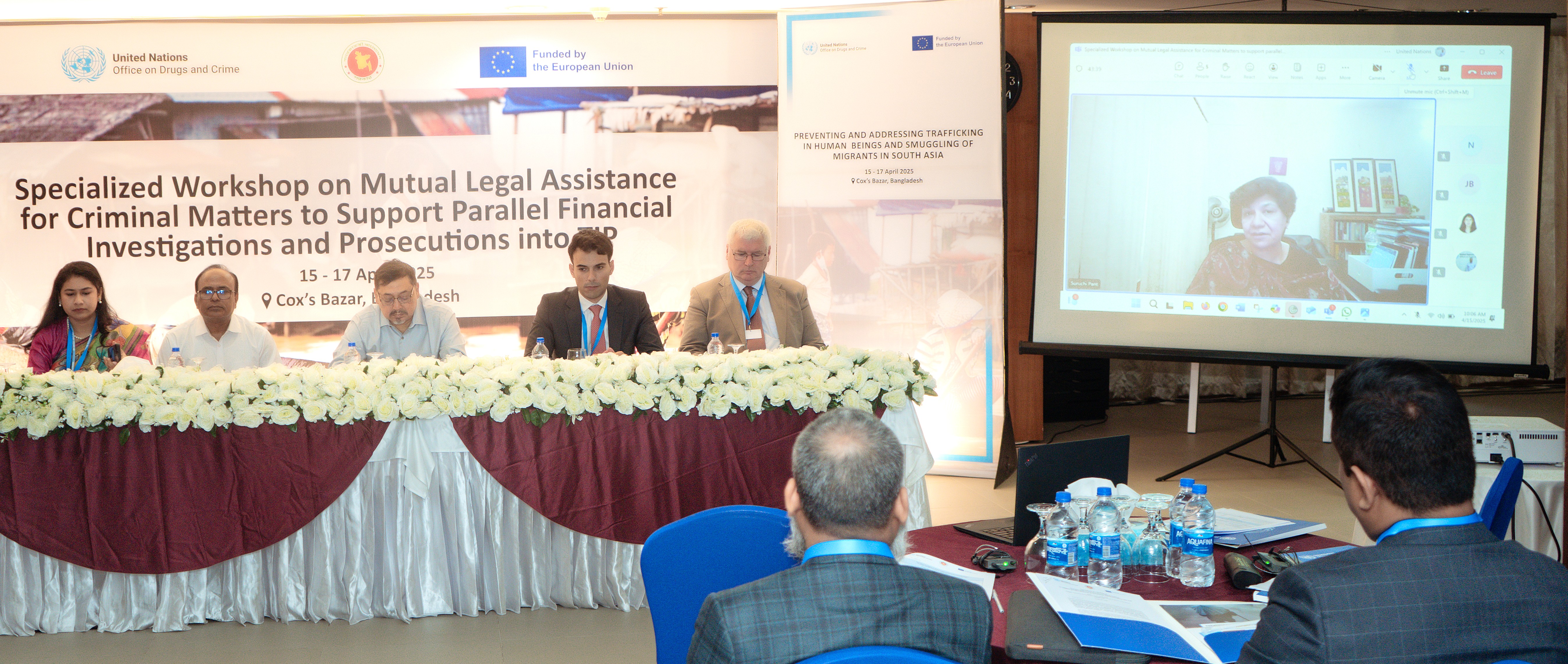 In Bangladesh, a strategic initiative by the Ministry of Home Affairs and UNODC reinforces the country’s international legal cooperation capabilities, through the formation of a dedicated national pool of Mutual Legal Assistance (MLA) experts. 25 senior officials from across criminal justice, law enforcement, foreign affairs and financial intelligence sectors were provided knowledge, tools and skills on financial investigations and prosecutions related to Trafficking in Persons (TIP) and Smuggling of Migrants (SOM). This effort, supported by the European Union, was part of a broader project on Preventing and Addressing Trafficking in Human Beings and Smuggling of Migrants in South Asia (THB-SOM).