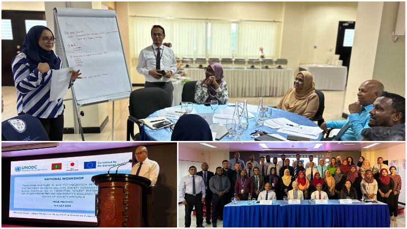 UNODC's pioneering initiatives in the Maldives underscore the vital importance of cooperation between law enforcement and civil society in countering violent extremism. The workshop was held within the framework of two projects: "Support to Addressing the Risk of Terrorism and to Increasing Security in the Maldives," funded by the European Union, and the "Enhancement of Ability in Maritime Safety and Security," supported by the Government of Japan.